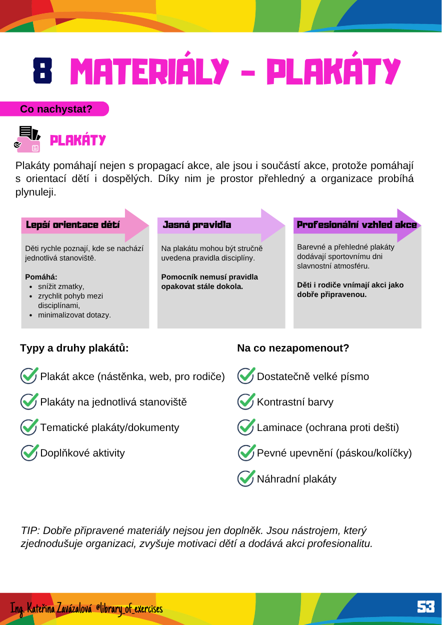 Tento e-book vznikl na základě mých dlouholetých zkušeností s organizací sportovních dnů pro děti. Během své praxe jsem udělala spoustu chyb a díky tomu postupně vytvořila systém, který pomáhá zvládnout celý den přehledně a bez zbytečného stresu.