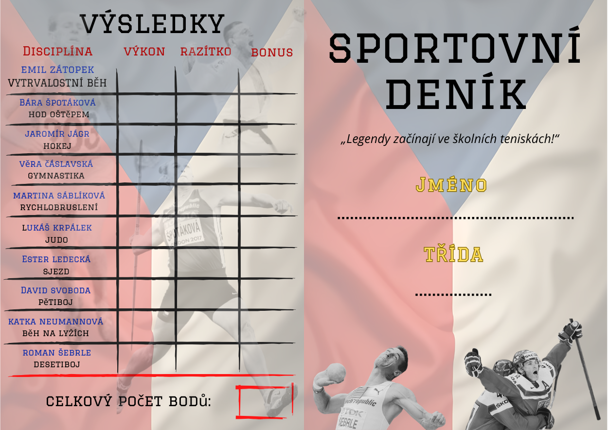Jako bonus můžete získat mou kompletní přípravu na sportovní den: Hrdinové českého sportu, který jsem realizovala minulý školní rok.